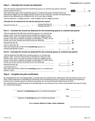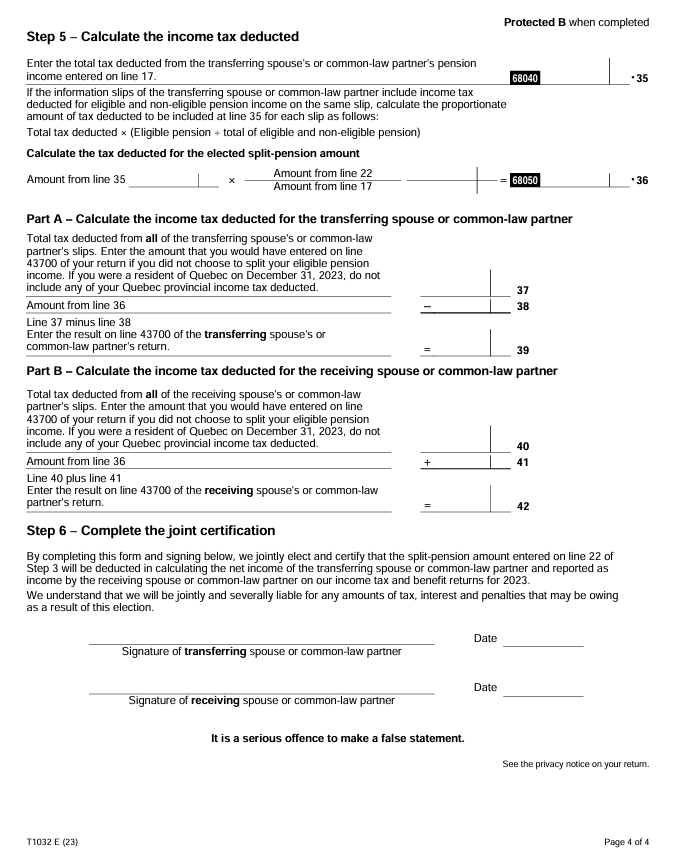 Form T1032 - Joint Election to Split Pension Income: Authorizing the Joint Election to Split Pension Income (if applicable).