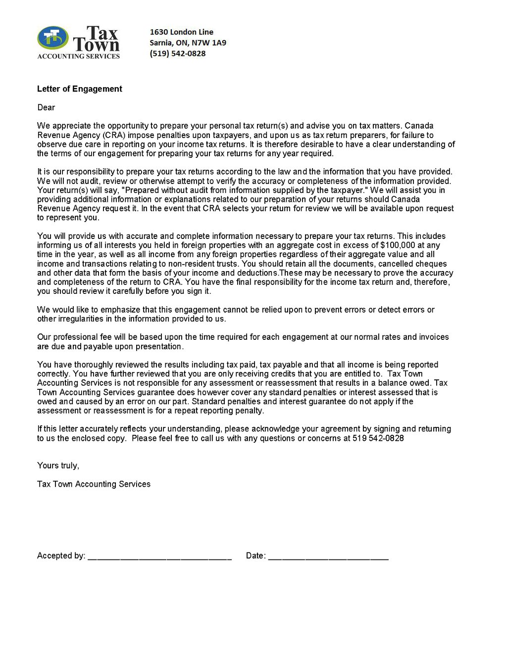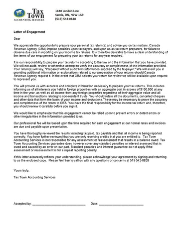 Letter of Engagement: Outlining the scope of services, fees, and other important terms and conditions of our engagement (if applicable).