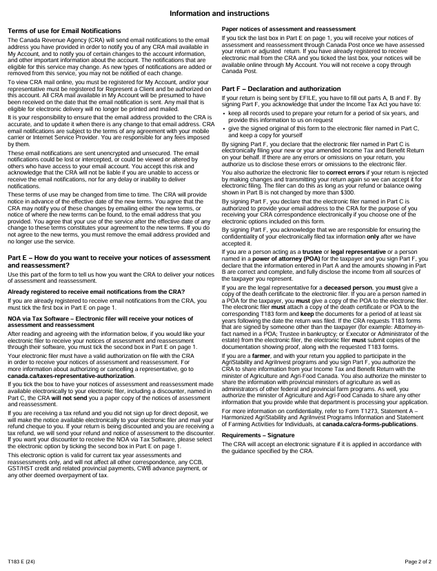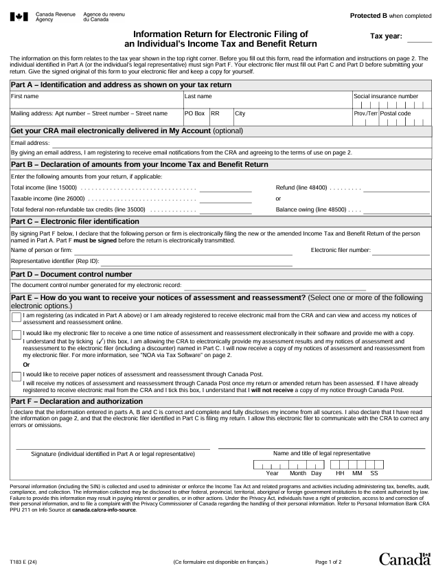 Form T183 - Authorize the electronic transmission: Authorizing Tax Town Accounting Services to file your return with the CRA (if applicable).
